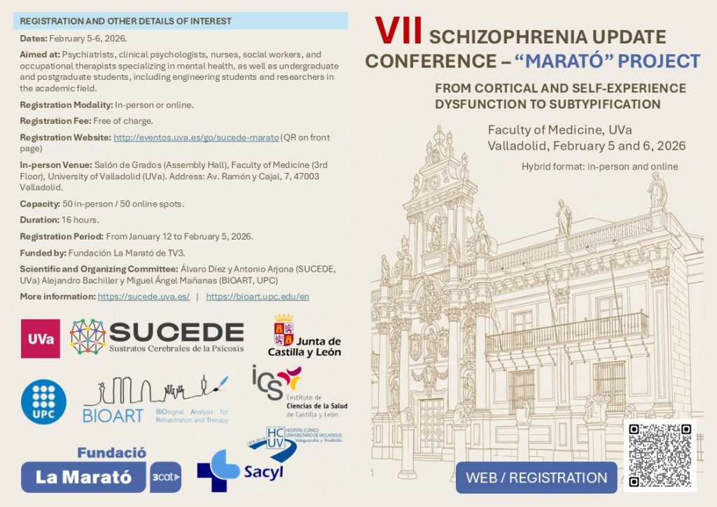 On February 5th and 6th, 2026, the Faculty of Medicine at the University of Valladolid (UVa) will host a key debate on the latest advances in schizophrenia research. Within the framework of “La Marató” Project, these VII Update Sessions offer a scientific journey ranging from cortical dysfunction to the search for biotypes based on neurobiological evidence.